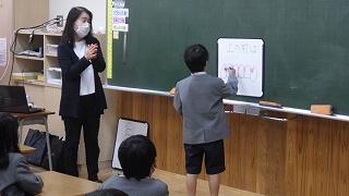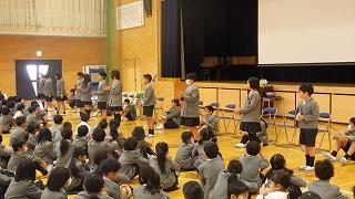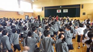 白帆台小学校は「白帆台クイズ」と「WAになって踊ろう」の歌とダンスを発表しました。
