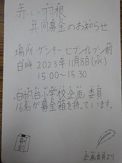 企画委員会では、11月8日(水)の15:00~15:30の間、ゲンキー白帆台店とセブンイレブン内灘白帆台店で赤い羽根共同募金を行います。企画委員16名が募金箱を持ってお店の前に立ちます。