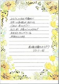 先日、総合的な学習の時間に見学に行った「道の駅内灘サンセットパーク」の方からお手紙が届きました。