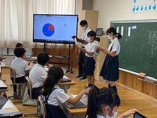 授業の最後には、クロムブックの集計機能を使い、話し合いのめあての振り返りを行っています。