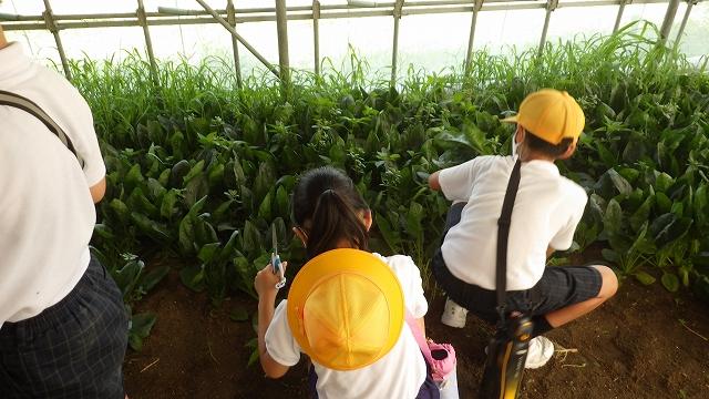 社会科「農家の仕事」の学習で、笠間農園さんに見学にいきました。帰りには自分たちで収穫したほうれん草を持ち帰り、大喜びでした。