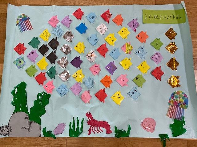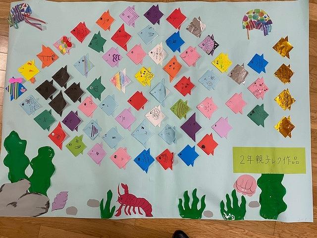 2年生の親子行事 スイミーの折り紙共同制作が完成しました。