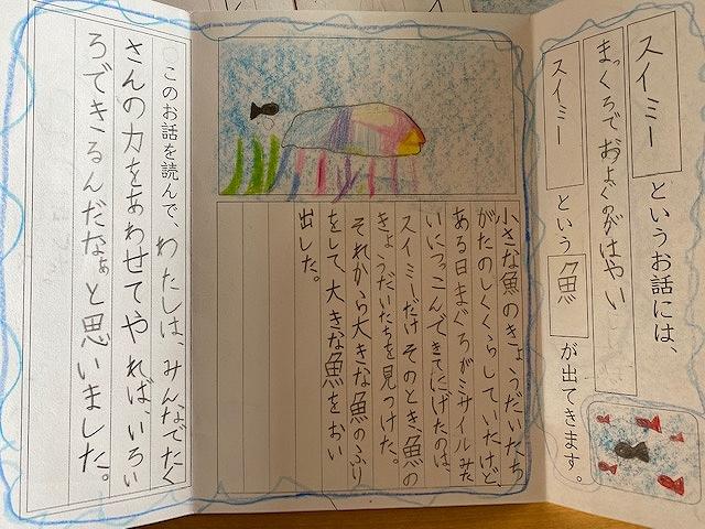 スイミーのお話のように2年生全員の協力でできあがった「大きなお魚」はとってもすてきです!!