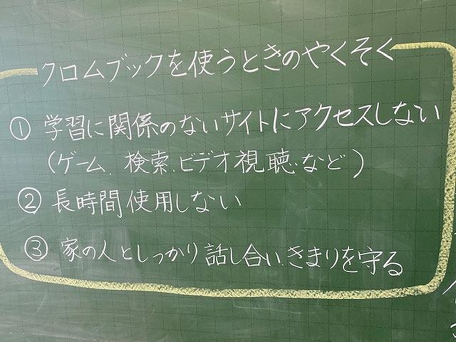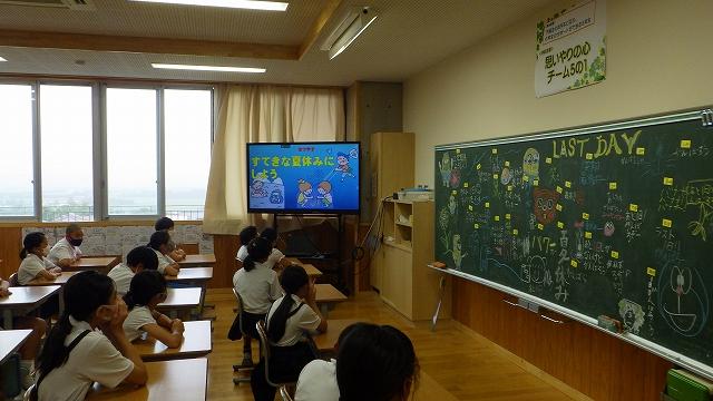 最後に、引き続き楽しい夏休みを過ごすために、各担任から「クロムブックを使う時のやくそく」や「命を守るための行動」について話がありました。