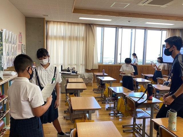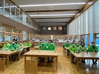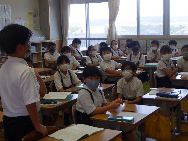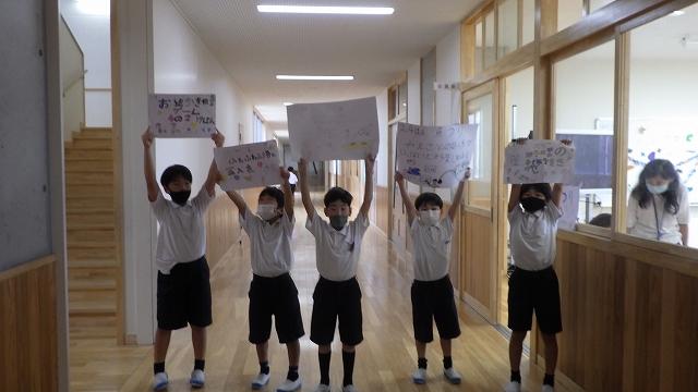本来なら体育館で全校児童との交流をしたいところでしたが、町内のコロナウイルス感染状況に鑑み、6年代表児童との対面式としました。