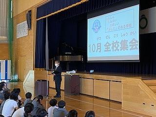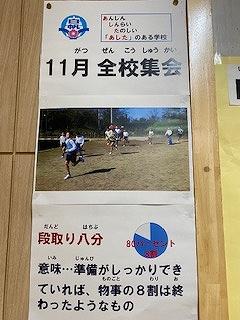 11月は、各教室で校内放送を使用しての全校集会としました。