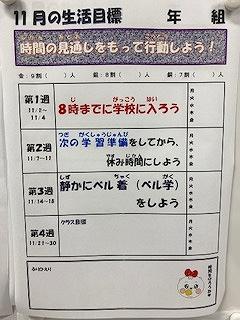 今月の生活目標は「時間の見通しをもって行動しよう!」です。
