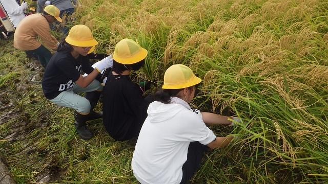 9月25日(月)に稲刈りを体験しました。実際に自分たちの手で稲を刈る体験を通して、手作業で作業をする大変さや、社会で学習した機械化による効率性も実感をもって理解することができました。