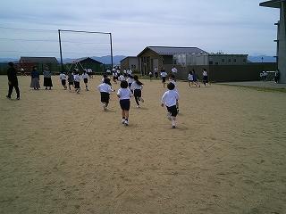 マラソン大会に向けて、休み時間にかけあし運動を行っています。