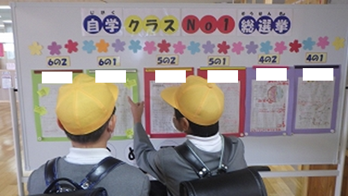 子供たちが、自分のクラスのナンバーワン自学ノートを選びました。