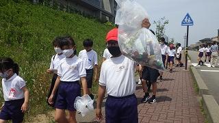 6月・7月は、企画委員会が主催した「ごみひろいイベント」を行っています。金曜日の昼休みにボランティアを募り、学校前の第三公園のごみを集めています。第一回、第二回とたくさんの子どもたちが参加してくれ、少しの時間で多くのごみが集まりました。「みんなの公園は、みんなできれいにしませんか?」という企画委員の呼びかけのもと、子どもたちが自主的にボランティアに参加してくれました。