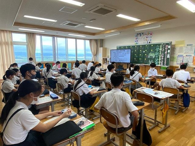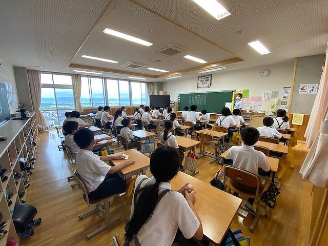 8月から新しく入った電子黒板のおかげで迫力いっぱいの画像とともに話を聞くことができました。