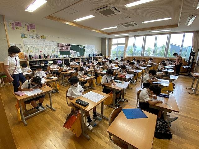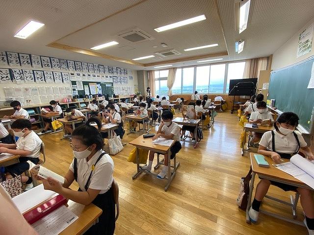 3~6年生は、先生の質問に答えたり個別にドリルを進めたりしました。