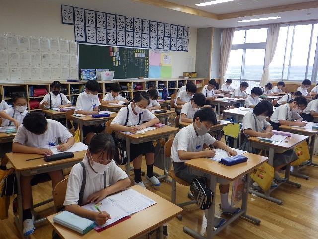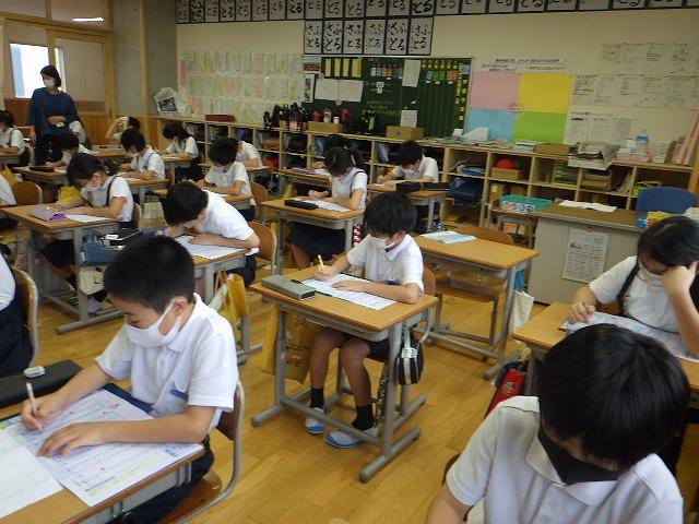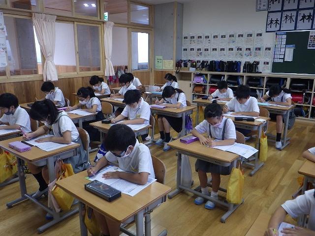 今年度より、子ども達の「書く力」を一層伸ばすために、毎週水曜日の朝学習は「視写」に取り組んでいます。10分間に『学年×60字』を目標に、子ども達の集中して取り組む姿が、どのクラス(1年生は2学期から取り組む予定です)でも見られます。「継続は力なり」全校でしっかり取り組んでいきましょう!