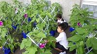 1年生は、生活科の学習で朝顔を育てています。毎朝水をあげ、大切に育てていた朝顔が大きく育ち、きれいな色の花が咲き始めました。子供たちはいつもとてもうれしそうにお世話をしています。