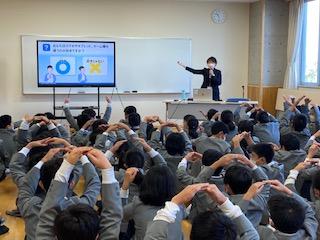 全クラスで学級活動「よい姿勢ですごそう」を行いました。