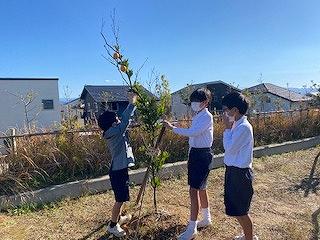 顔晴れ!しらっこ果樹園の樹木に園芸委員会がプレートをつけました。