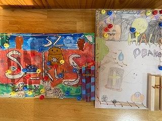 2年生で初めてカッターを使い、窓のあるおうちをつくりました。