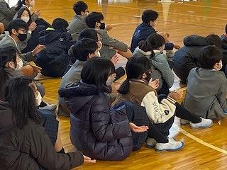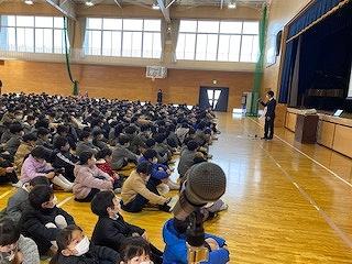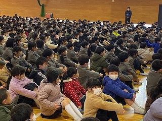 5・6年生が、集会の少し前から体育館に集まり、しーーんとした雰囲気をつくってくれました。