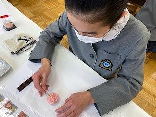 先日、「総合的な学習の時間 生き方を学ぶ」でお話を聞いた若岡和奏 若岡さんから指導を受け、水引コサージュをつくりました。