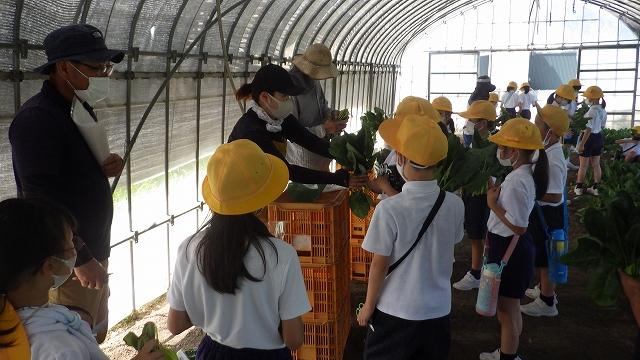 社会科「農家の仕事」の学習で、笠間農園さんに見学にいきました。帰りには自分たちで収穫したほうれん草を持ち帰り、大喜びでした。