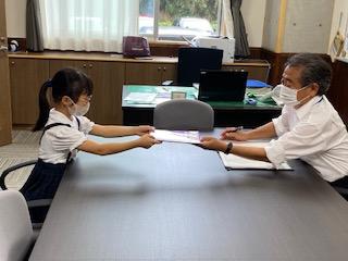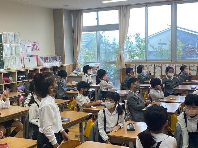 本来なら体育館で全校児童との交流をしたいところでしたが、町内のコロナウイルス感染状況に鑑み、6年代表児童との対面式としました。