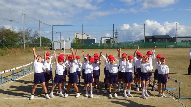 さわやかな空のもと、これまでかけ足運動でつけてきた力を出し切りました。