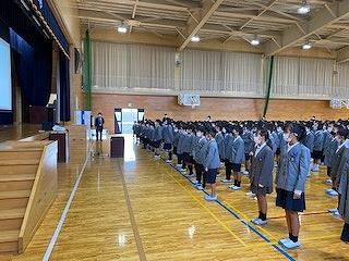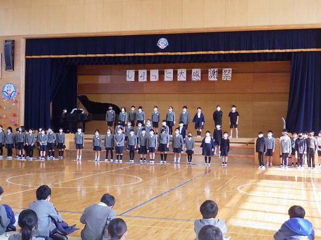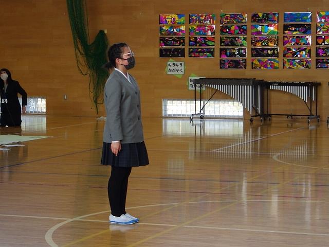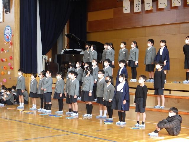まず体育館に響き渡る美しい声で校歌を歌いました。