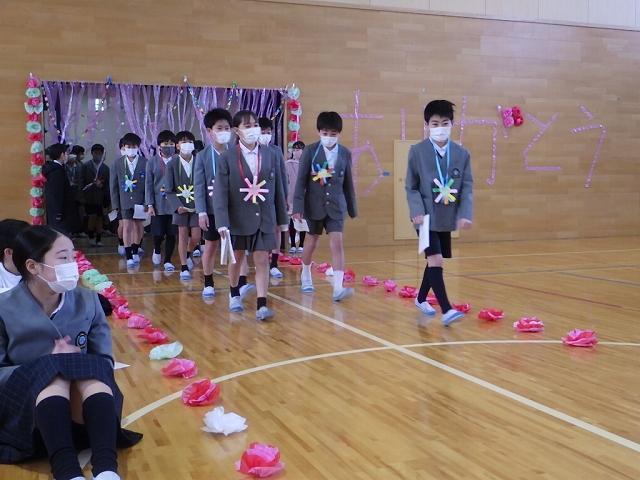いつも通り、6年生が下級生の見本として、一番最初に入場し、よい姿勢で静かに待つ姿を見せてくれました。