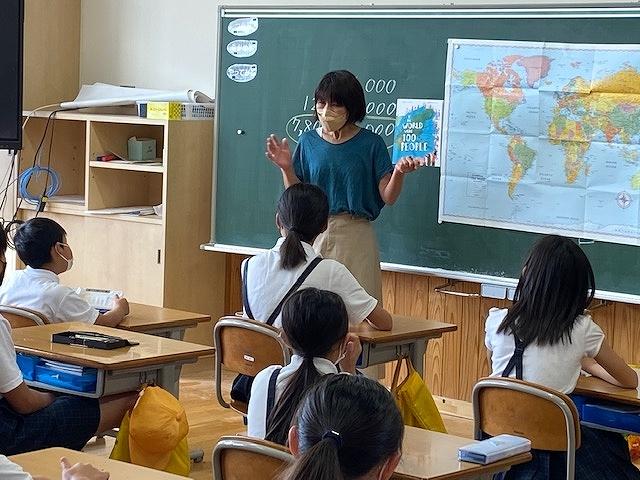 今日は5年生に「世界が100人の村だったら・・・」を読んでくださいました。