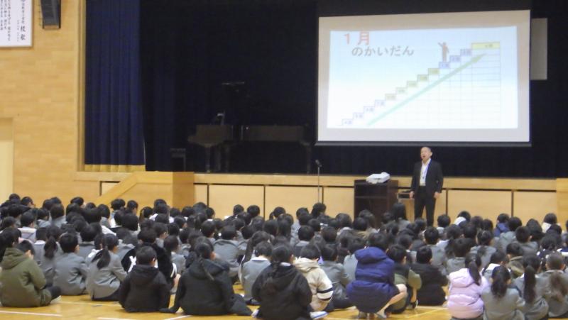 校長先生より、今年度の登校する日が残り51日であることに触れ 1 日 1 日 を 大 切 に 過 ご し 、 充 実 さ せ て ほ し い こ との話がありました。