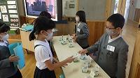 9月29日の5,6限目には、1組と2組でお店屋さんの見せ合いっこをしました。それぞれのお店屋さんのよいところを見つけたり、もっとよいお店にするためのアドバイスをしたりしました。