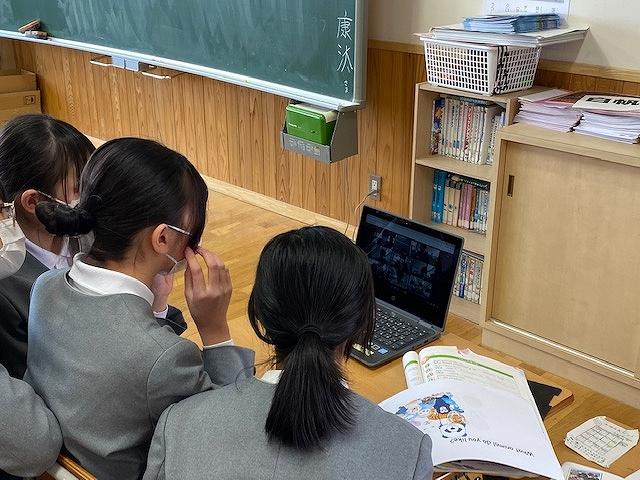 6年外国語科 「My Future , My Dream」の学習で、共に中学に進学する町内の6年生と、入りたい部活や楽しみな学校行事などについて、クロムブックを使って伝え合いました。