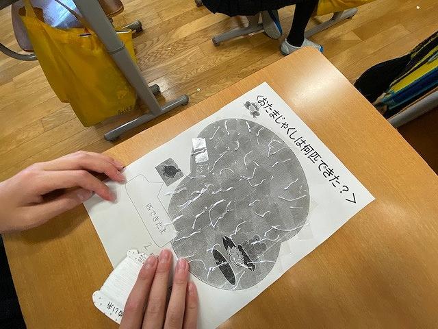 まず、玉止め玉結びができるようになるために、「おたまじゃくしづくり」をしました。