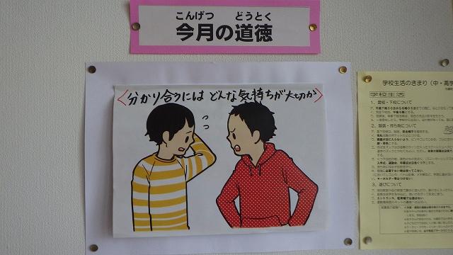 白帆台小学校では、各教室に道徳の授業の内容を掲示しています。