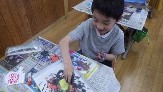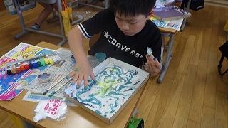 液体粘土に色を付けて、絵を描きました。不思議な感触に興奮し、手で描く楽しさを味わっていました。