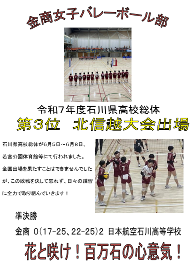 10月25日に行われた春の高校バレー石川県代表決定戦で、日本航空石川高等学校にセットカウント0対3で敗れました。
