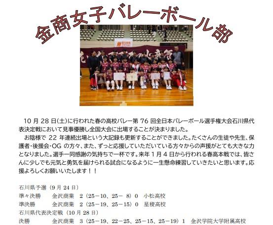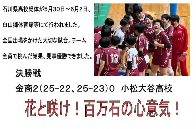 10月25日に行われた春の高校バレー石川県代表決定戦で、日本航空石川高等学校にセットカウント0対3で敗れました。