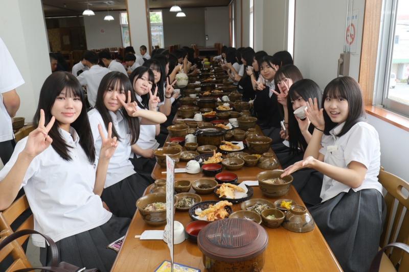 食後には、伝統芸能「エイサー」の鑑賞を行いました。迫力ある演舞に生徒たちは真剣に見入り、沖縄の文化に触れる有意義な時間となりました。