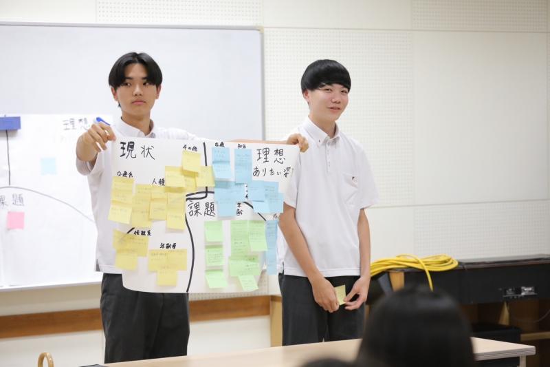 思納村では思納村博物館を周り、昔と今を体験することでの変化や進化あるいは退化しているところを知ることができました。班活動のブレーンストーミングではそれぞれが体験したことを出し合って良いシートを作り、発表して、質疑応答も対応できたのでしっかりと思納村について学ぶことができました。(27H)