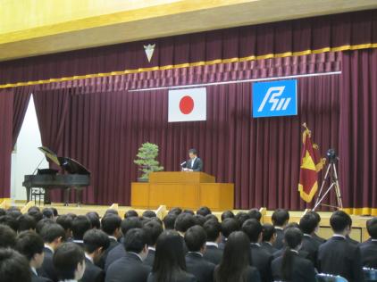 初めに校長先生より、「皆さんはとても勤勉で、ものごとを粘り強くやり抜くことができる生徒です。しかし、『勤勉であること』と『自分が勤勉であることをきちんと周囲に伝えられること』は違います。皆さんは、初対面の面接官に対して、自分の勤勉さ、粘り強さをどうアピールしますか?」など、面接で大切なことを問うかたちで激励の言葉がありました。