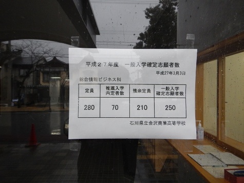 平成27年3月3日(火)、平成27年度一般入学志願者数(最終)を正面玄関に張り出しました。