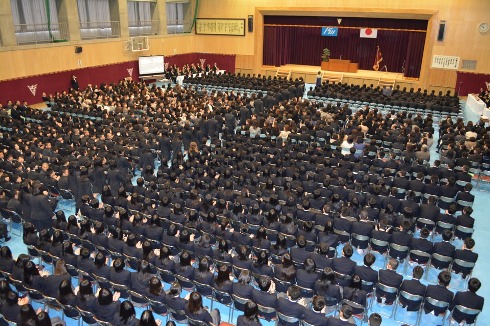 平成27年2月26日(木)期末考査後、第1体育館で、卒業式会場準備が行われました。