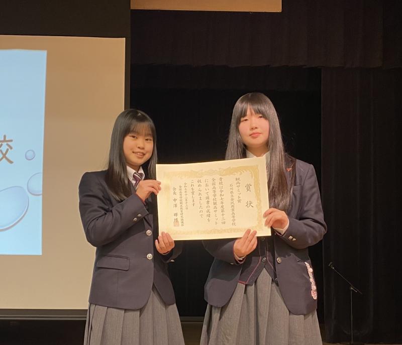12月12日(金)から宮城県松島町で行われた全国高等学校観高サミットに本校から2名の生徒が参加し、「能登の防災学習を取り入れた兼六園ガイド」について発表をして観高サミット賞をいただきました。