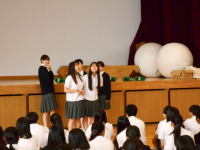 7月6日(木)期末考査・学年集会終了後に、7 月、8月行われる全国大会・中部日本大会・野球部石川県大会の壮行式を行いました。まず、全校生徒で校歌を歌った後、山崎しのぶ校長先生より激励のことば、西方美結生徒会長が激励の挨拶、男子バスケットボール部、野球部1年生が中心となって全校生徒とともに激励応援を行い、思いを届けました。その後、各部の代表からは決意表明が力強く行われました。皆さんの健闘をお祈りいたします。