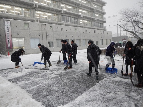 平成28年1月25日(月)、風吹の中、早朝除雪が行われました。37H、野球部、女子バレーボール部、女子バスケットボール部、その他有志が参加しました。