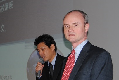 平成28年2月16日(火)3・4限、平成27年度外務省「高校講座」が開催されました。講師は、外務省の江端康行氏とアメリカ国務省のドリュウ・シャフルタウスキ氏のお二人でした。