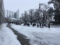 きょうの除雪当番にあたっていた16Hの皆さんが、担任の長山先生と一緒に、正門付近の除雪作業をしました。