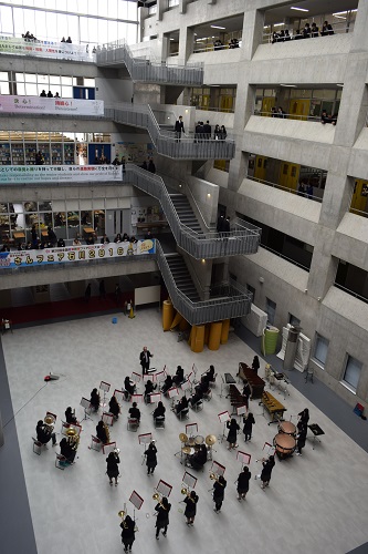 平成28年1月20日(水)13:00~13:10、吹奏楽部によるランチタイムコンサートが開催されました。