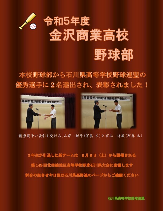 トップページ 学校紹介 学校長挨拶基本方針等学校経営計画・評価計画学校案内教育課程表等金商の制服Movieいじめ防止基本方針不登校児童生徒の保護者のための支援ガイド在校生の皆さんへ 金商 生徒心得(校則)各種証明書(病欠等)荒天時の登校いしかわ性暴力被害者支援センター学年通信 3年学年通信2年学年通信1年学年通信保健室・相談室より図書館だより購買部より行事予定表 就職状況進学状況部活動 部活動の成績・表彰等運動部 陸上競技卓球男子バスケットボール女子 バスケットボール男子バレーボール女子バレーボールソフトボールハンドボールバドミントンテニスソフトテニス野球サッカーチアリーディング少林寺拳法剣道文化部 演劇合唱フラワーアレンジメント茶道写真吹奏楽ESS競技かるた美術書道インターアクト商業部 情報処理珠算・電卓ワープロ簿記研究ライフサポート観光研究学校行事 高校入学に向けて 商業について学校説明会体験入学入学志願者心得生徒会のつぶやき本校へのアクセスPTAその他 創立120周年式典中核的専門人材養成事業新校舎の建設風景旧校舎の風景・旧校舎解体